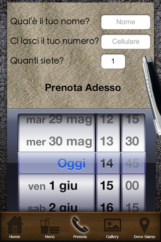 - Reservations through integrated email client, with name, phone number and people.